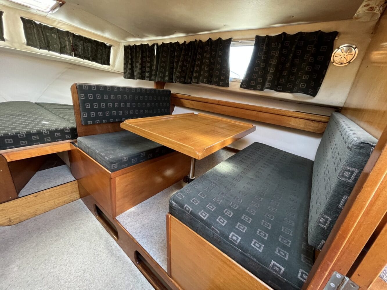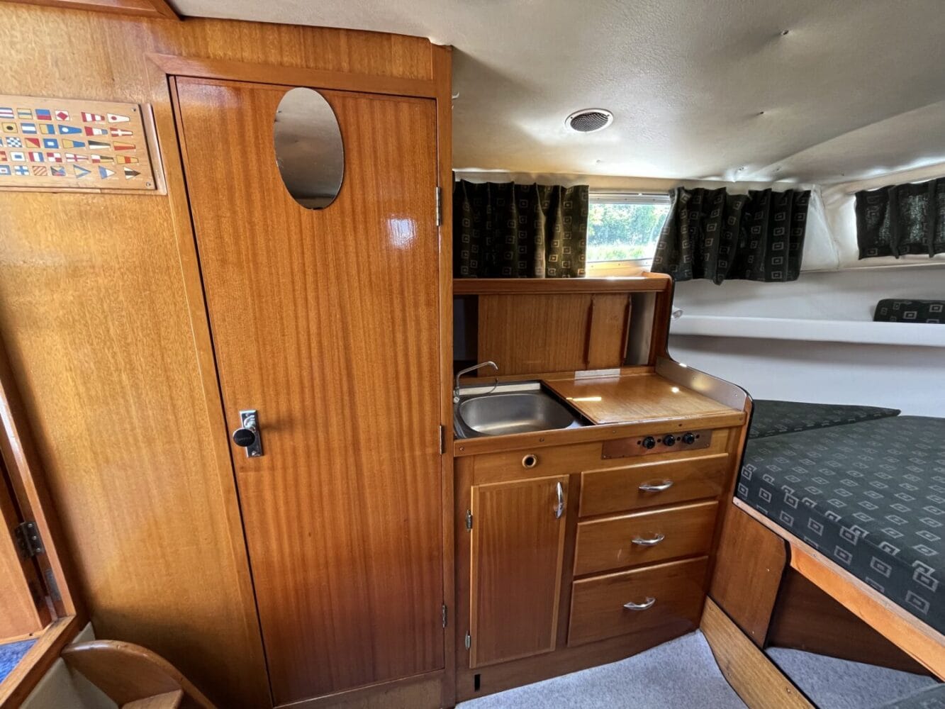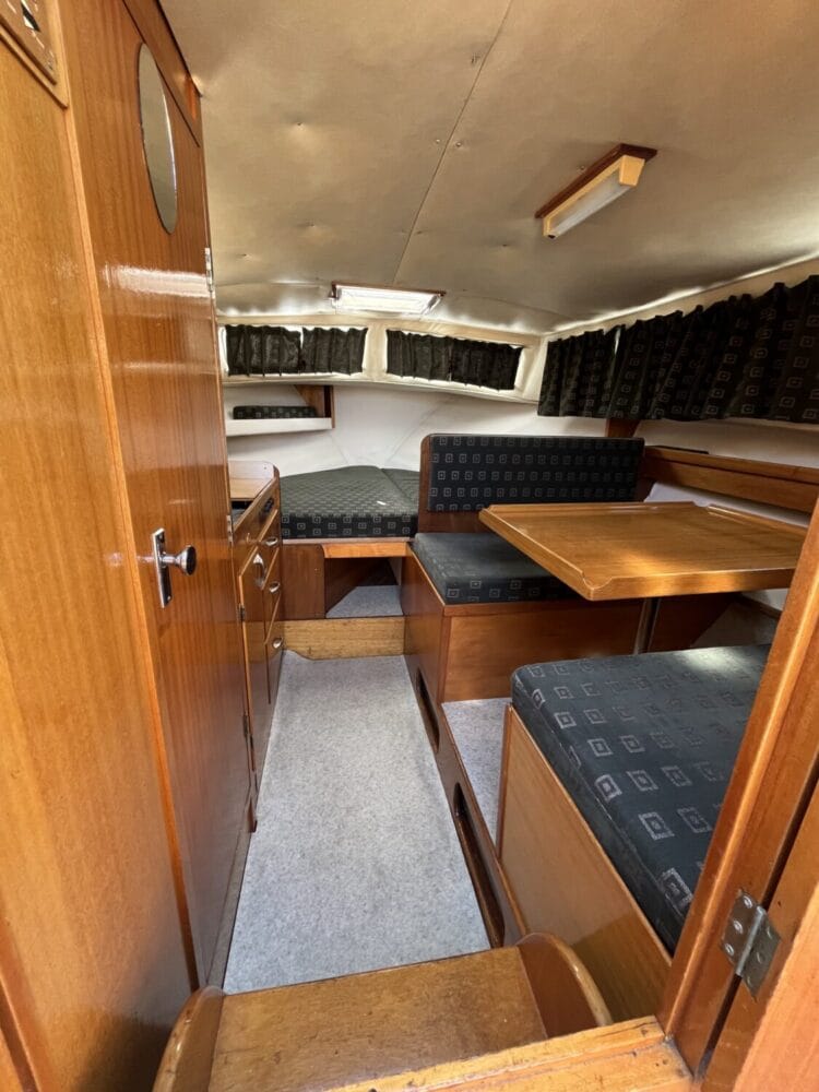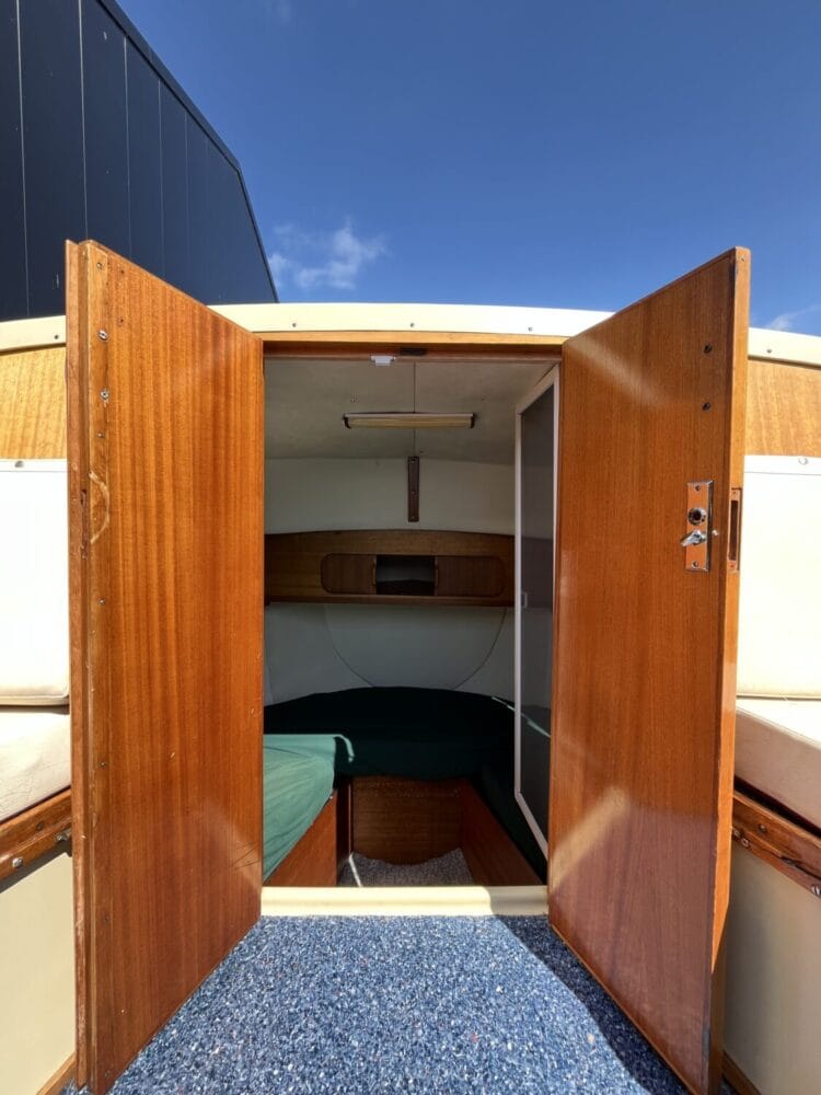 Deze Risor 27 AC Noorse spitsgatter uit het bouwjaar 1983 verkeerd in een nette staat, en werd in 2021 voorzien van een nieuwe Vetus 42 pk motor met slechts 185 draaiuren.