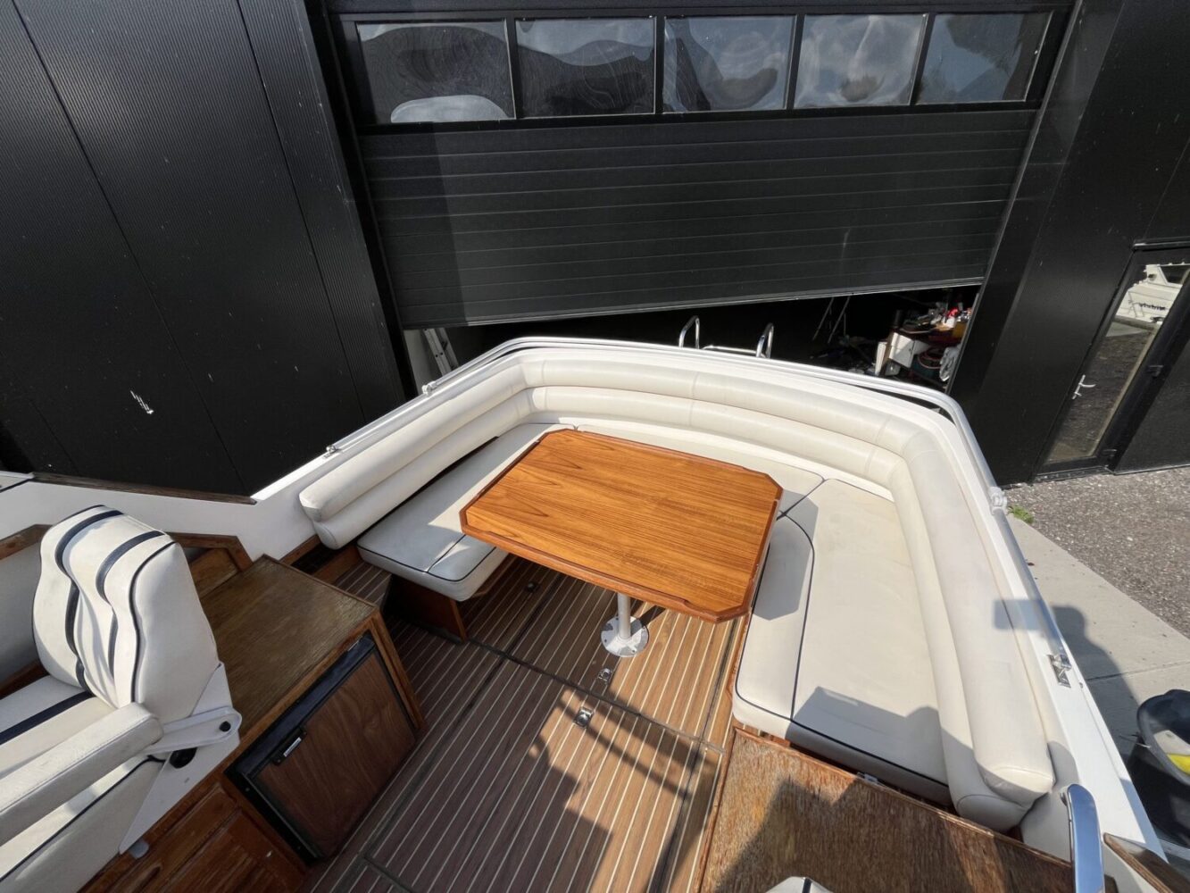De boot beschikt over een donker blauwe kuiptent welke op het moment specialistisch wordt gereinigd en geimpregneerd.