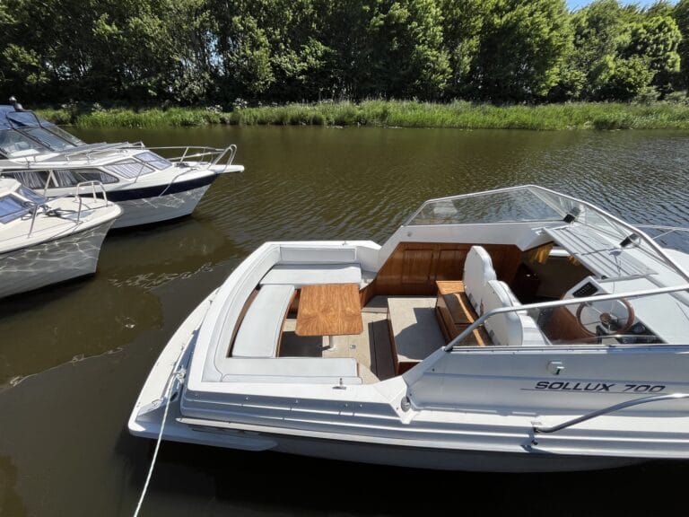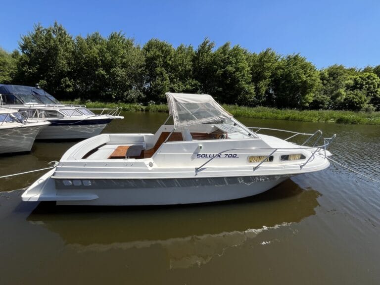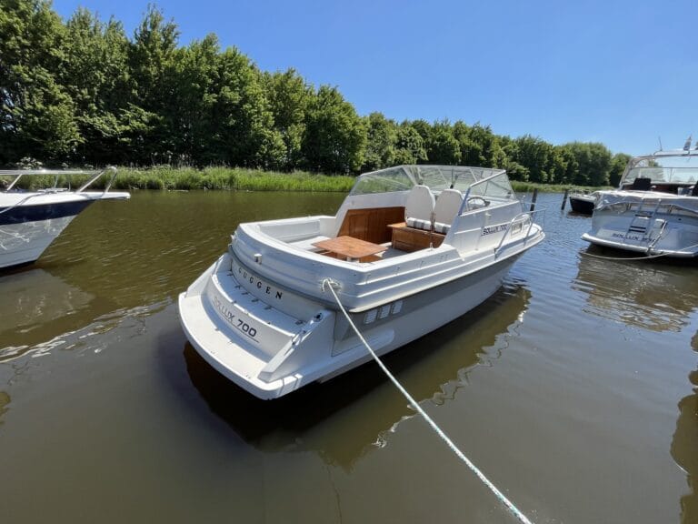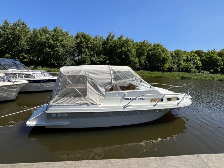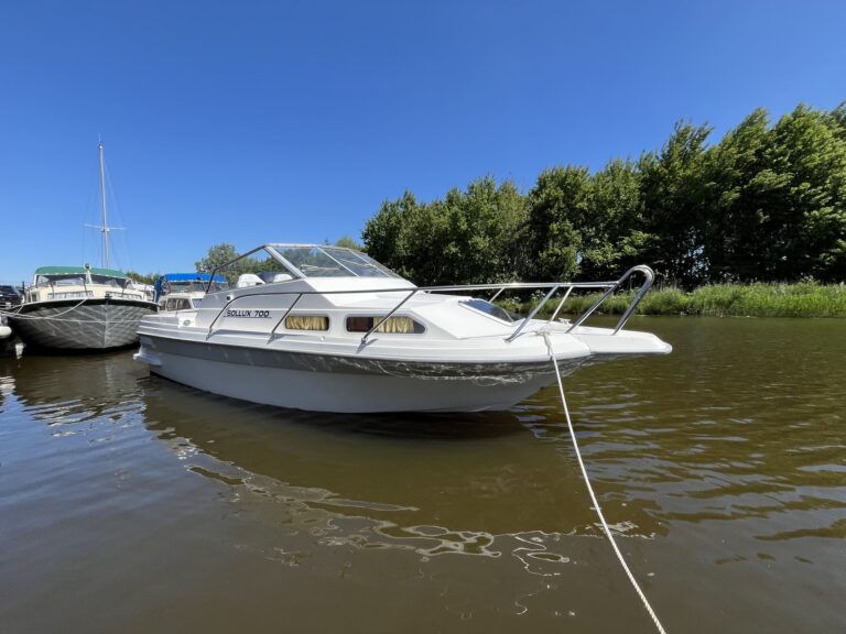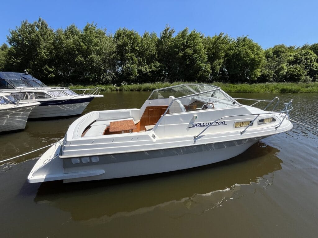 De Sollux 700 is een Noorse kajuitsloep. Dit betekent de beste makelij en tevens vaareigenschappen. Door haar geringe diepte en zeewaardigheid is deze boot uitermate geschikt voor de Nederlandse wateren. De boot is voorzien van prachtige en recente stoffering binnen en buiten. Mooie kunstlederen kussens in de kuip en nette stoffering in de kajuit. De boot is tevens voorzien van een lichte kuiptent. In de kajuit een leuke zit die tot een tweepersoonsbed is om te bouwen. Tevens vindt u hier een kast met opberg mogelijkheden en een toiletruimte me pomptoilet. In de kuip is praktisch met de ruimte omgegaan. De Sollux 700 heeft een mooie rondzit met tafel die tevens is om te bouwen tot (zonne)bed. Onder de stoelen voorin bevind zich een keuken met spoelbak en een 1 pits kookstel. In het motorruim bevind zich een goed onderhouden en krachtige Volvo Penta 90pk diesel motor die een volledige servicebeurt heeft gehad. Achterop heeft u beschikking over een mooi zwemplateau met buitendouche.Het onderwaterschip is voorzien van nieuwe antifouling. Met deze schitterend Sollux 700 Noorse kajuitsloep is het opstappen en wegvaren!